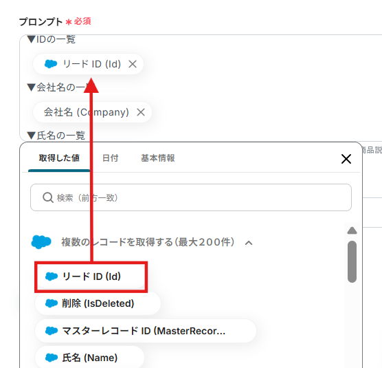 - Salesforceの「複数のレコードを取得する」アクションでは、分析対象としたいリードを任意で設定してください。