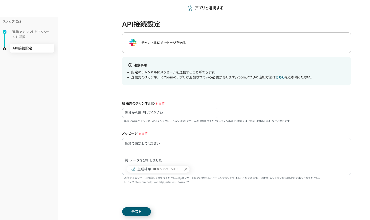 ステップ6:アプリと連携する「チャンネルにメッセージを送る」