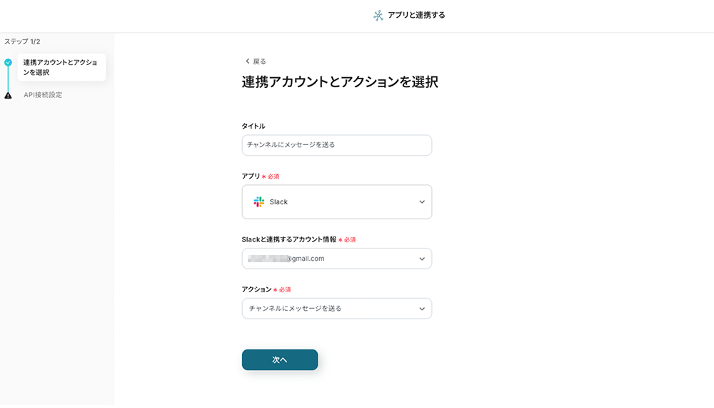 (1/2)連携アカウントとアクションを選択