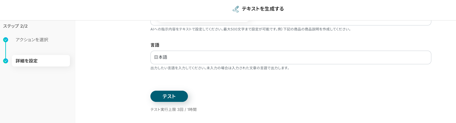 ステップ5:テキストを生成する「テキストを生成する」