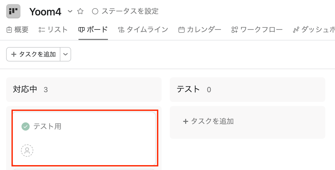 今回のフローでは、特定のプロジェクトのタスクが完了したことがトリガーになるため、先ほど指定したプロジェクト内のタスクを「完了」にしてください。