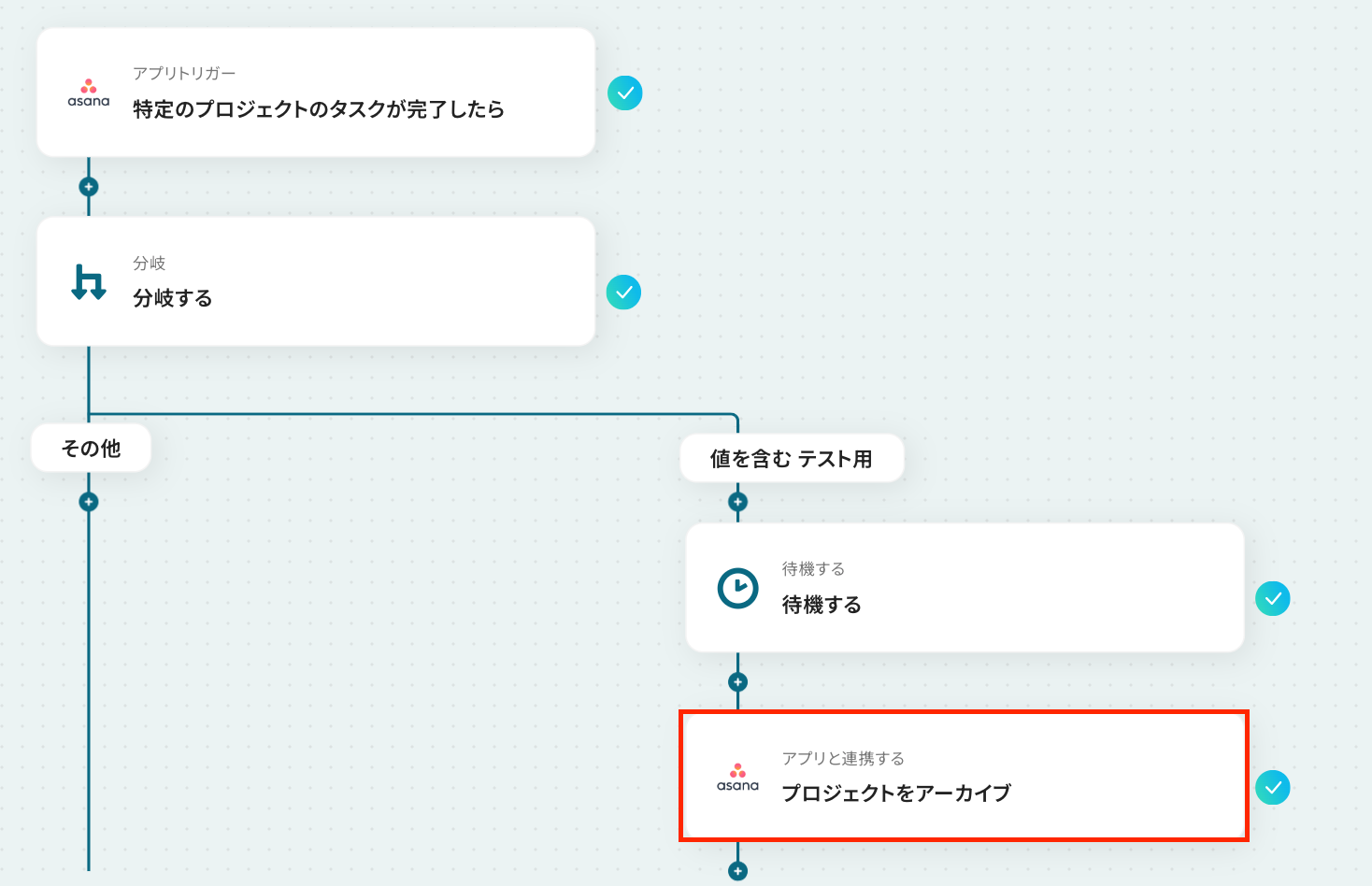 それではここから代表的な例として、Asanaで特定のタスクが完了してから指定日数が経過したプロジェクトを、自動でアーカイブするフローを解説していきます!