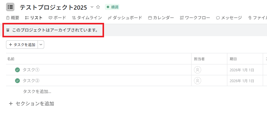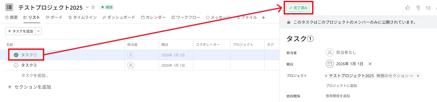 また、実際にステータスが変更されるので、Asanaを確認してみましょう。