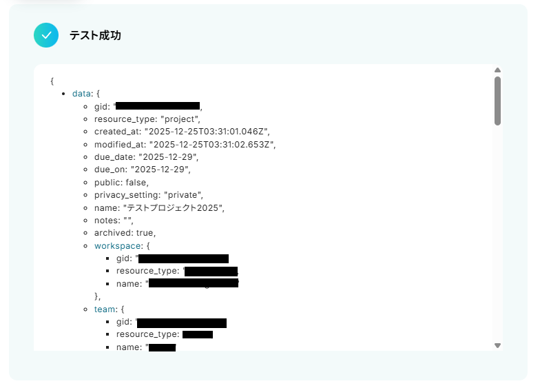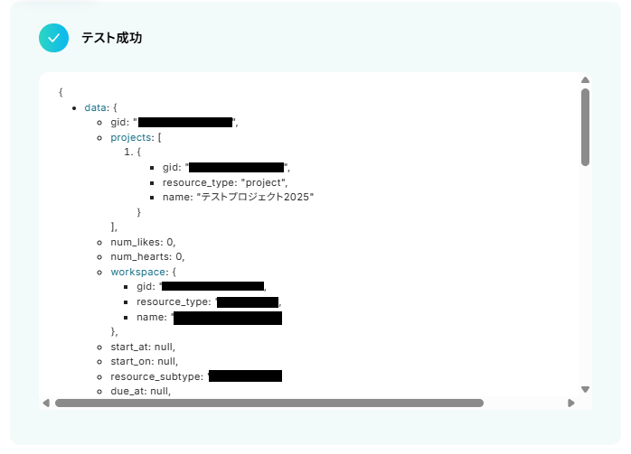 - オペレーションで、Asanaから特定のプロジェクトに紐づくタスクの一覧を取得します。
