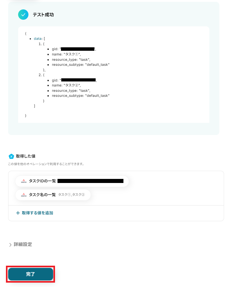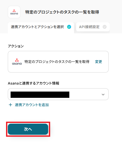 ステップ4:Asanaのタスク一覧を取得する設定