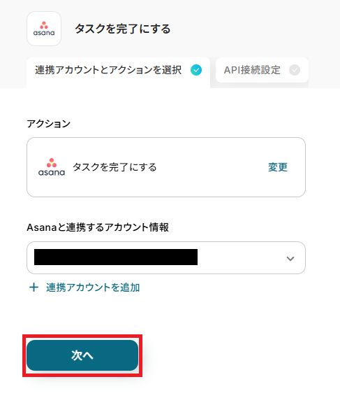 再度、Yoomと連携するAsanaのアカウントに間違いがないかを確認し「次へ」をクリックしましょう。