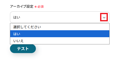 設定できたら「テスト」を押してください。