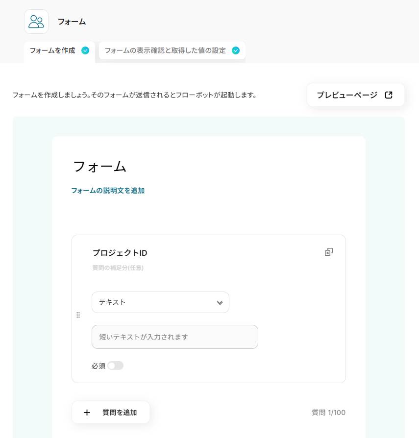 フォームは元から設定されており、【プロジェクトID】が送信できるようになっています。
