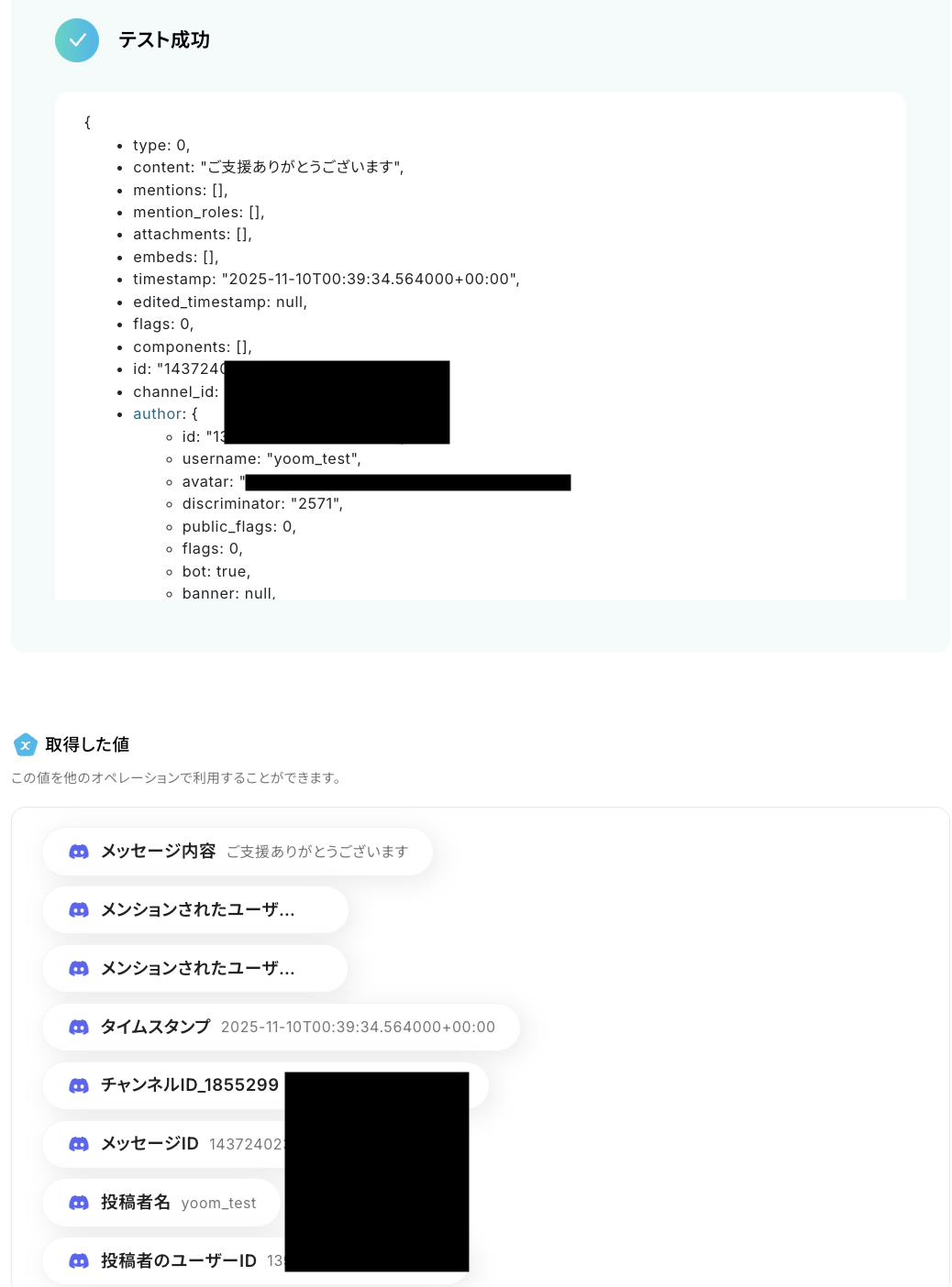 以下の画像の取得した値はこの後のステップで使用することができます。