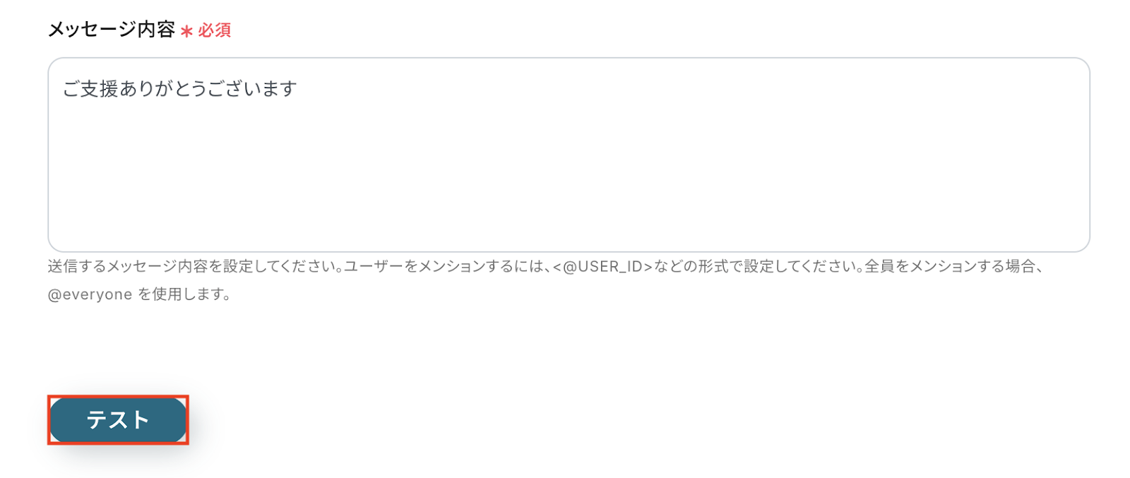 入力が完了したら、設定内容とトリガーの動作を確認するため「テスト」をクリックします。