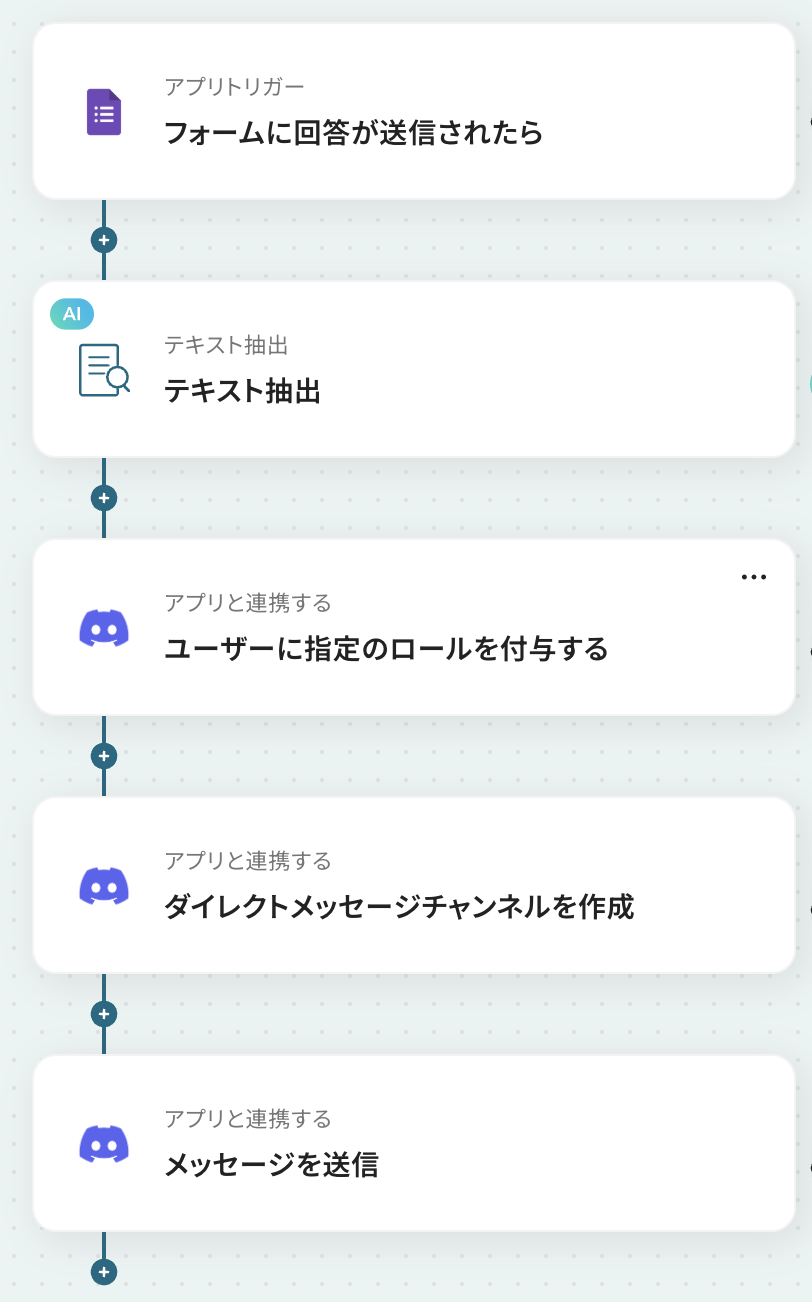 それではここからGmailで特定の入金確認メールが届いた際に、該当ユーザーにDiscordで支援者ロールを自動で付与し、個別のDMを送信するフローを解説していきます!