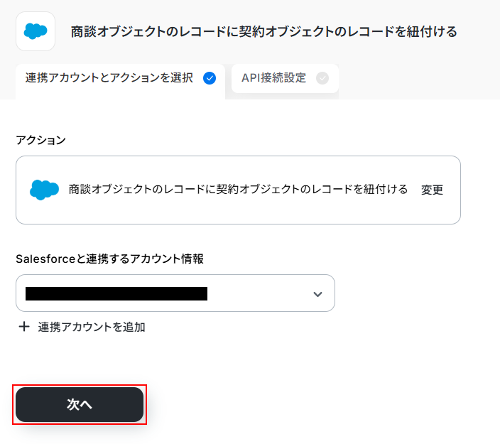 商談オブジェクトのレコードに契約オブジェクトのレコードを紐付けるをクリックします。