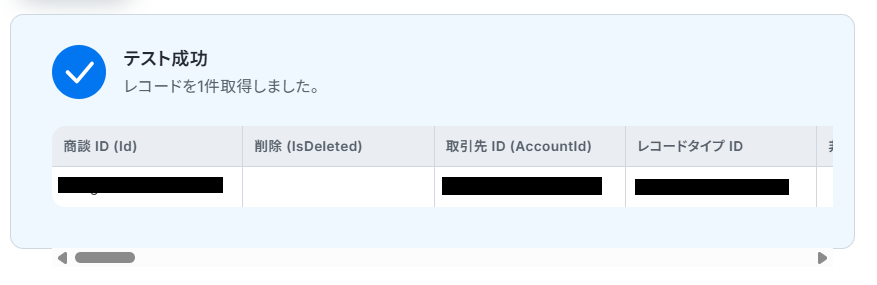 ※取引先IDのみだと複数のレコードを取得してしまう可能性があります。