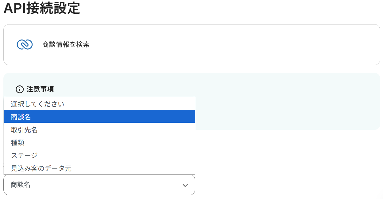 今回は商談名を検索ワードとして抽出しているので「商談名」を選びます。