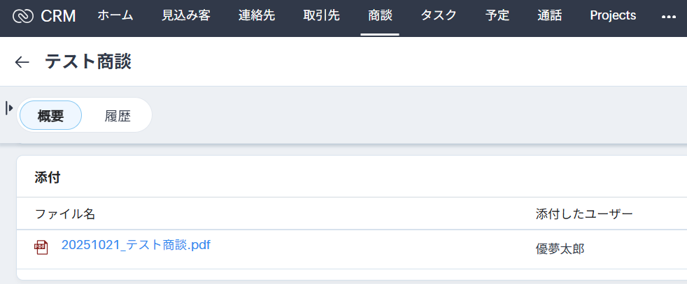 この時、ファイル名にZoho CRMで登録した商談名を含むようにしましょう。