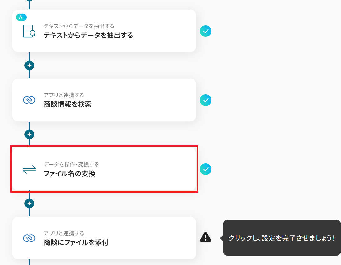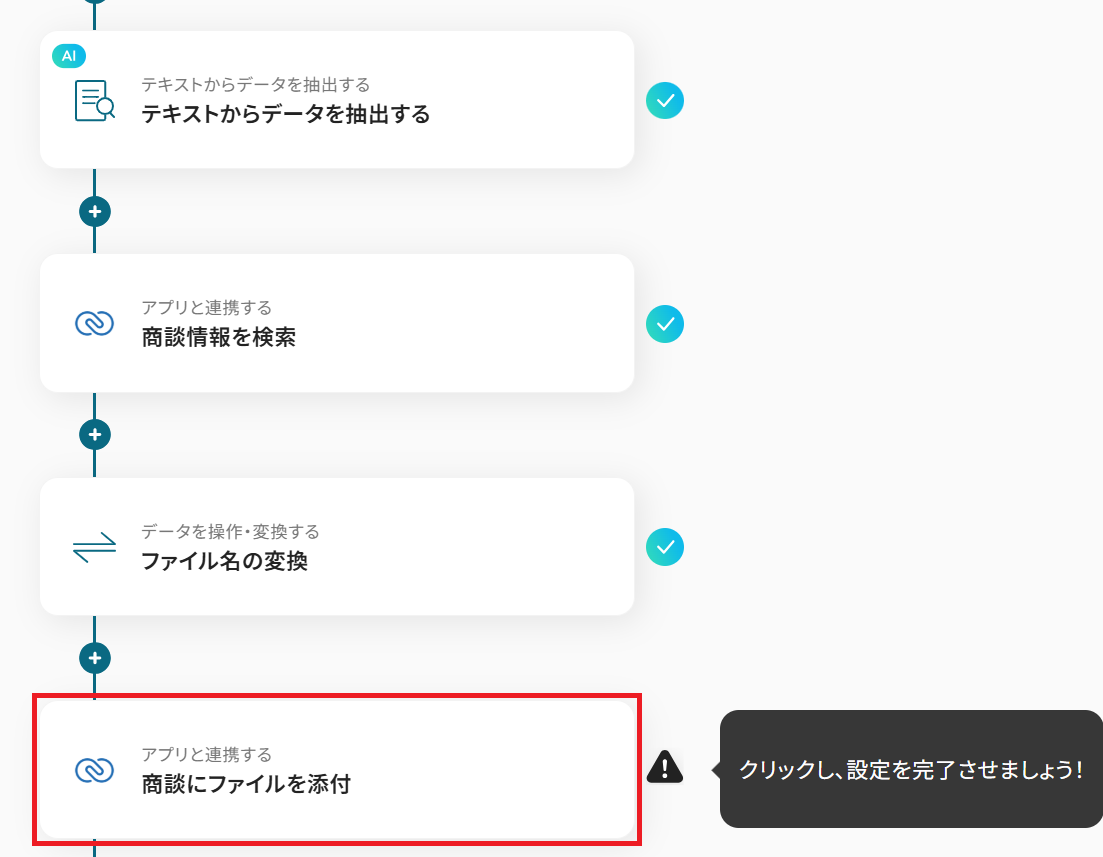 値の欄には、ステップ5・6と同様に「商談名」が取得した値から設定されているのでそのままで大丈夫です。