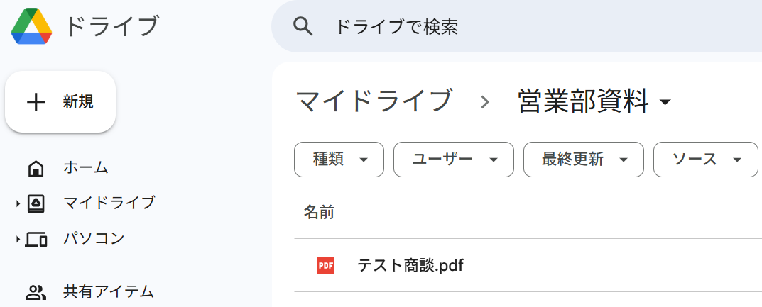 準備として、Google Driveのフォルダにテスト用のファイルをアップロードしてください。