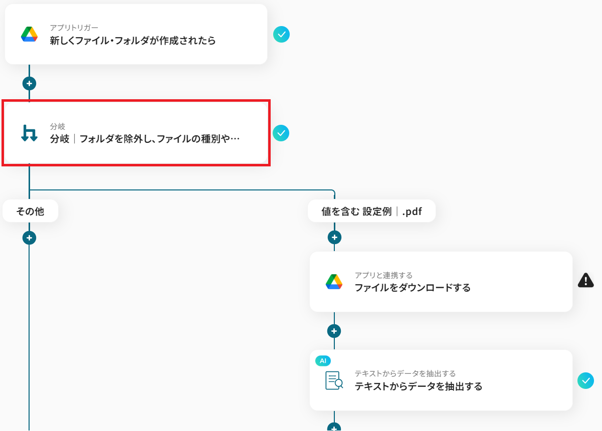 「分岐|フォルダを除外し、ファイルの種別や名称を指定」をクリック。