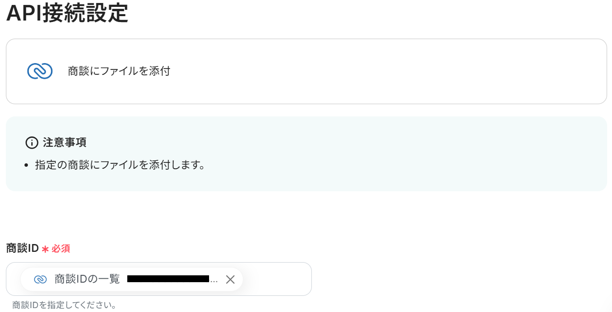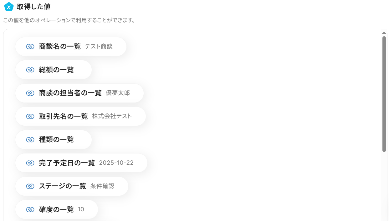 商談IDの欄にはこれまでのステップ同様「商談IDの一覧」の値が設定されているのでそのままで大丈夫です。