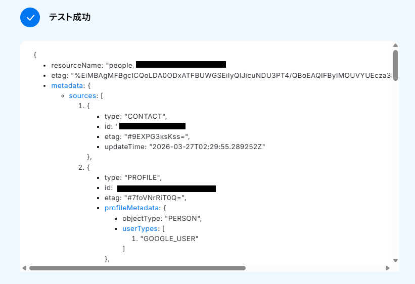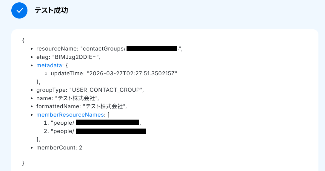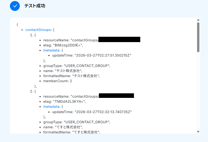 ステップ6:Googleコンタクトの連絡先グループ情報を取得する設定