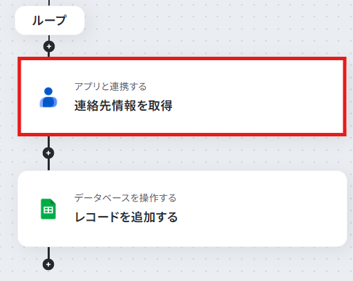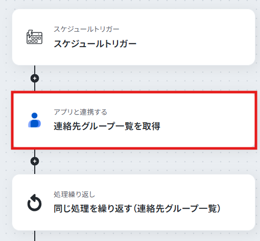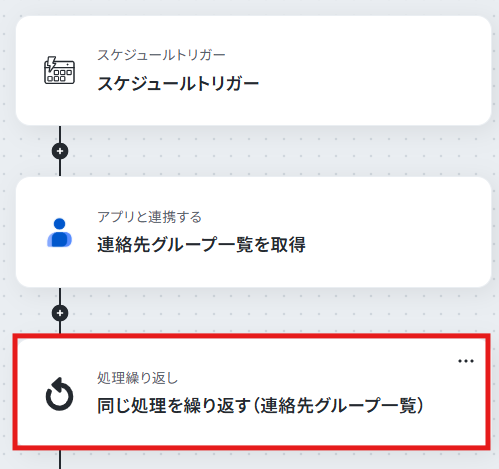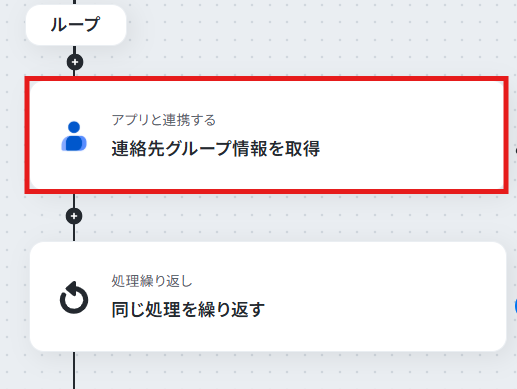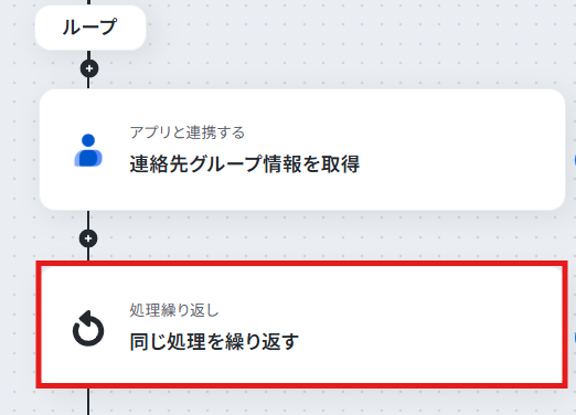 「同じ処理を繰り返す(連絡先グループ一覧)」をクリックし設定しましょう。