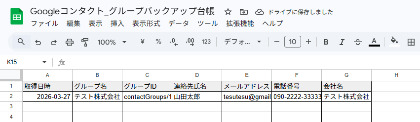 定期的にGoogleコンタクトの全連絡先グループ情報を取得し、Google スプレッドシートにバックアップする