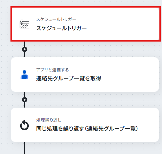 それではここから代表的な例として、定期的にGoogleコンタクトの全連絡先グループ情報を取得し、Google スプレッドシートに自動でバックアップするフローを解説していきます!