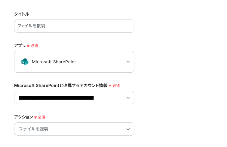 ステップ4:Microsoft SharePointのアクション設定