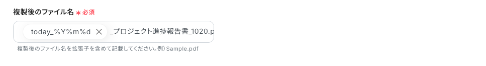 「複製後のファイル名」には、複製後の拡張子(例「○○○.pdf」)を含めて記載します。