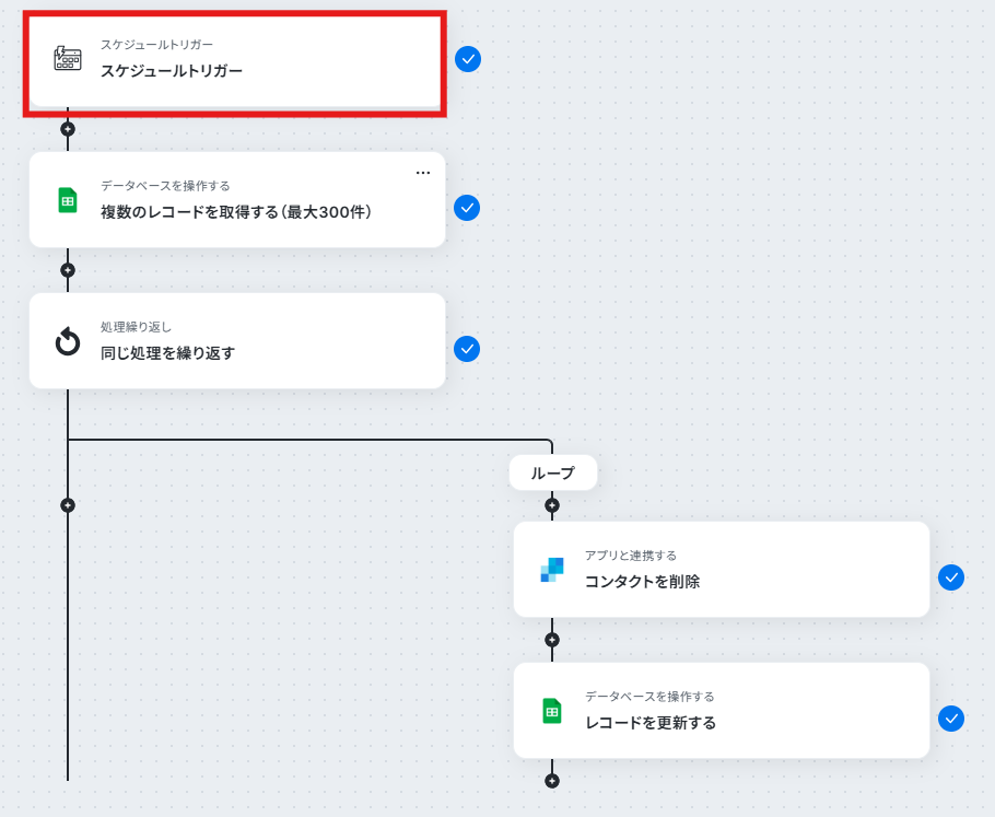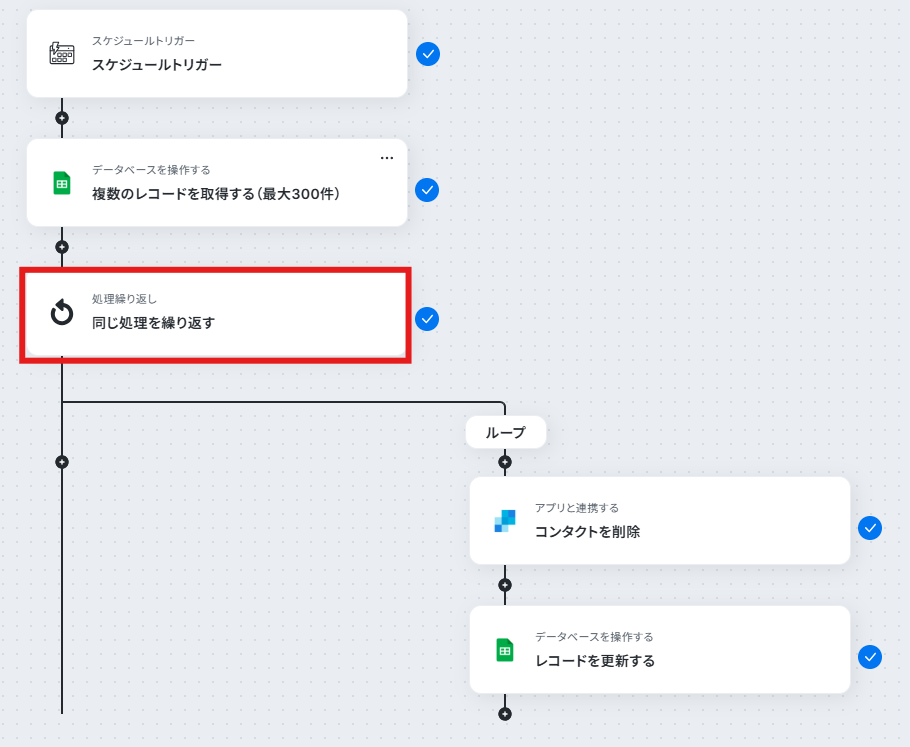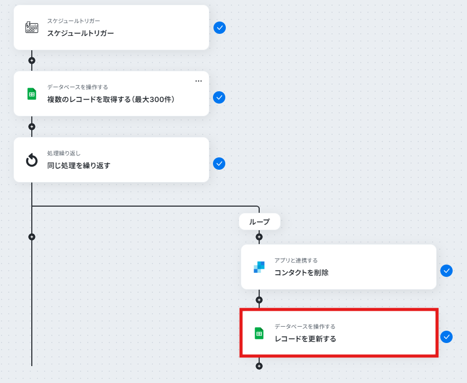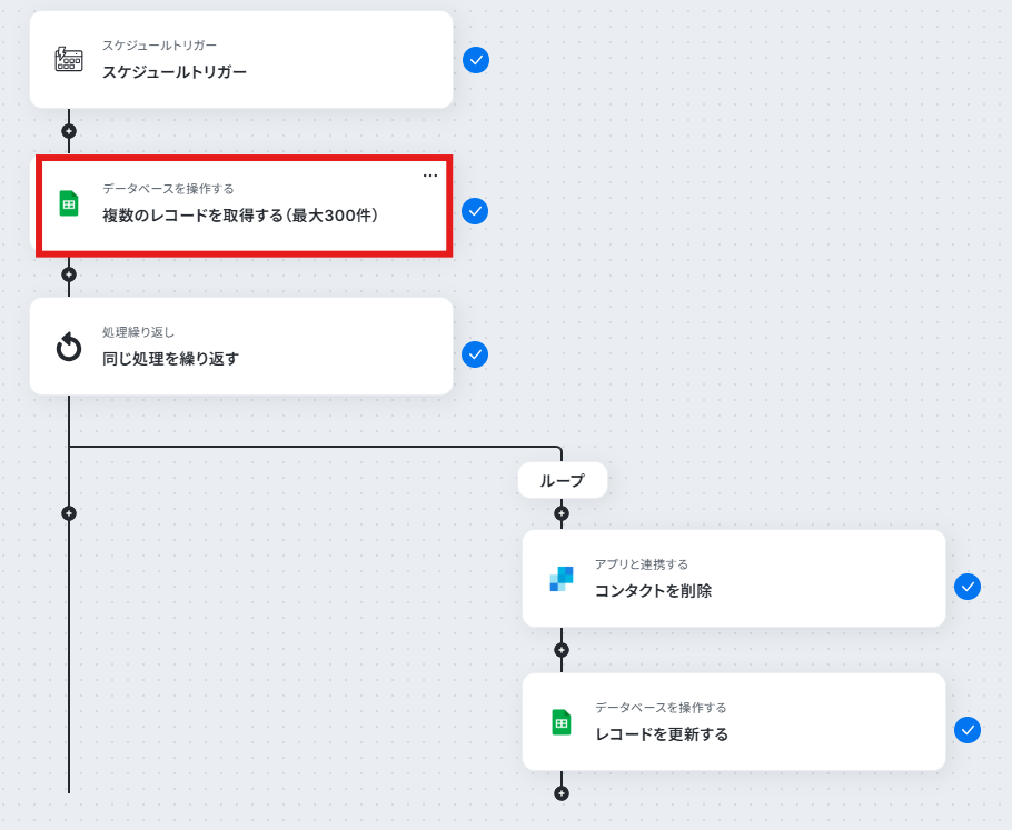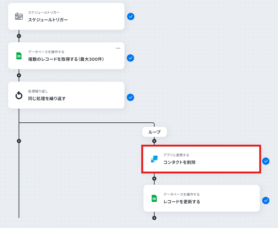 なお、実際のフロー稼働時は、取得したレコード分コンタクトが削除されます。