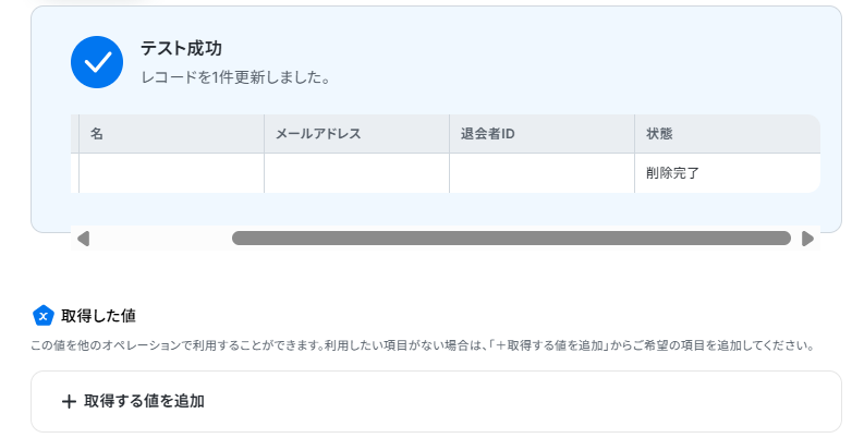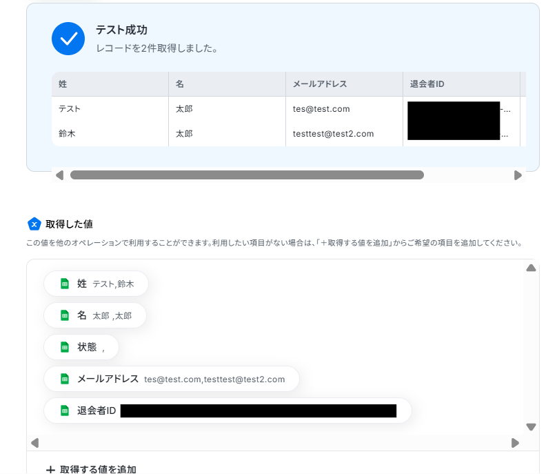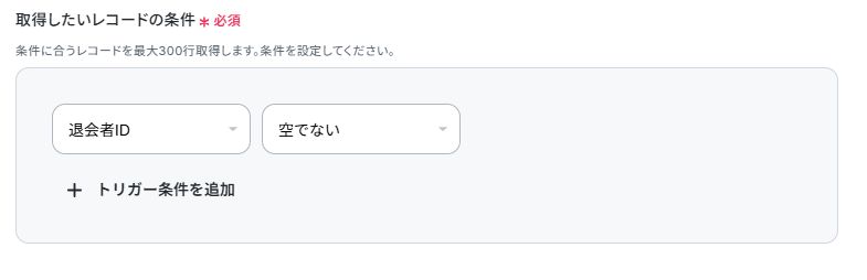 「取得したいレコードの範囲」は、今回「退会者ID・空でない」としました。