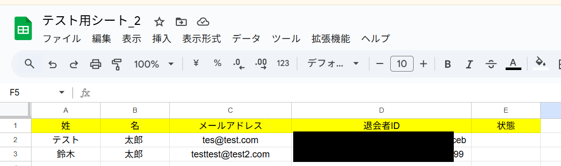 今回は以下のようなGoogle スプレッドシートを用意しました。