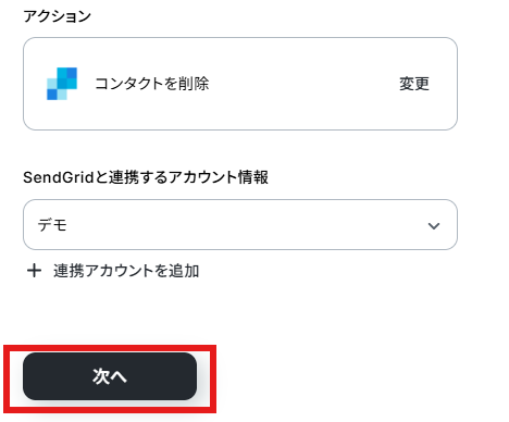 次にSendGridからコンタクトを削除するので「コンタクトを削除」をクリックしてください。