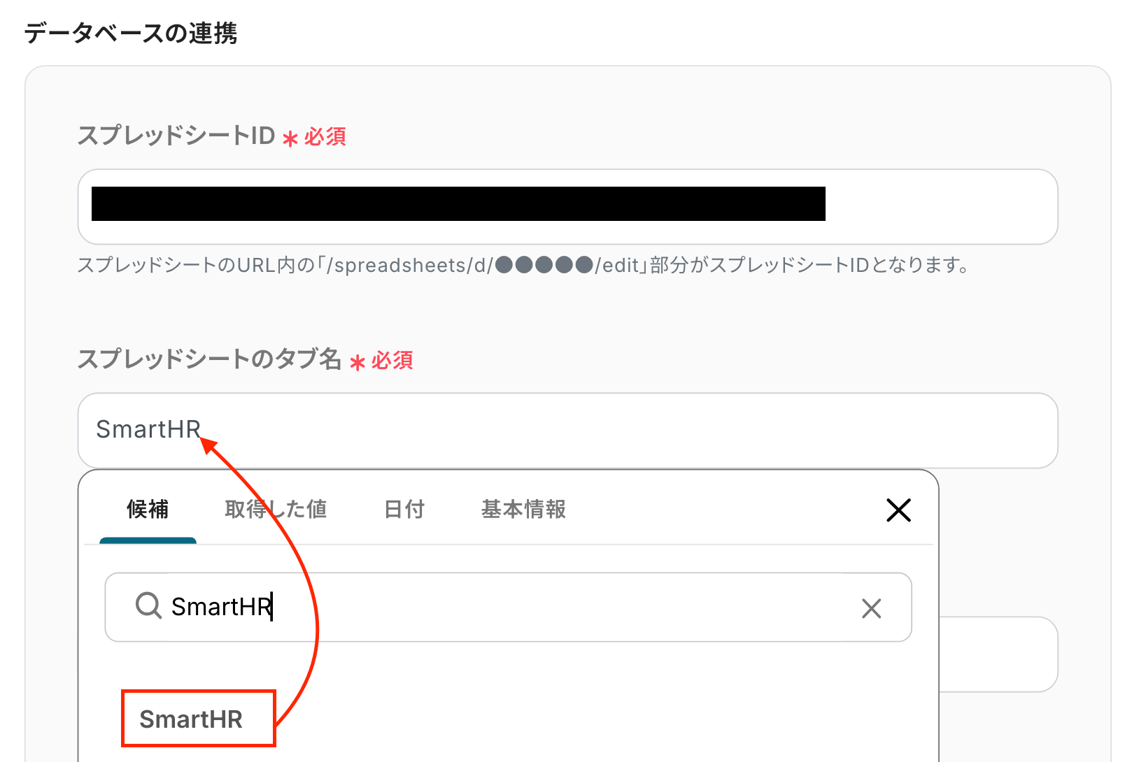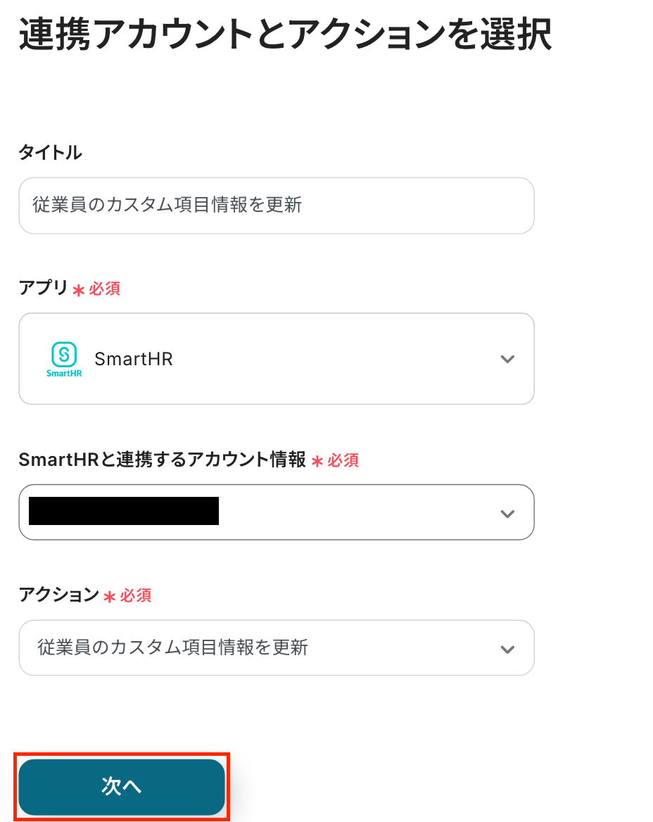 ここでは、SmartHRの従業員カスタム項目を一括更新する設定を行います。