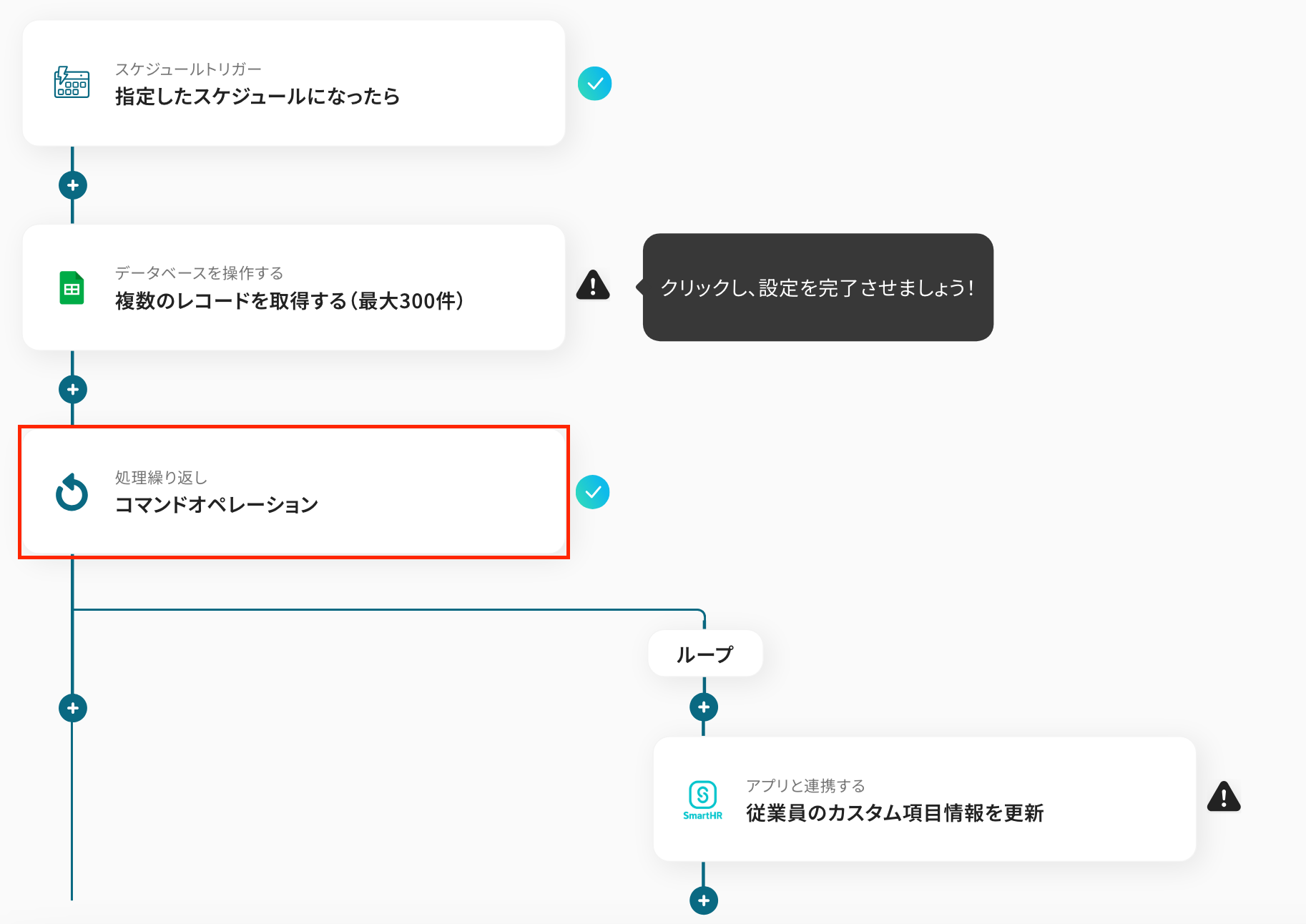 ※繰り返し処理の詳しい設定方法については、こちらをご参照ください