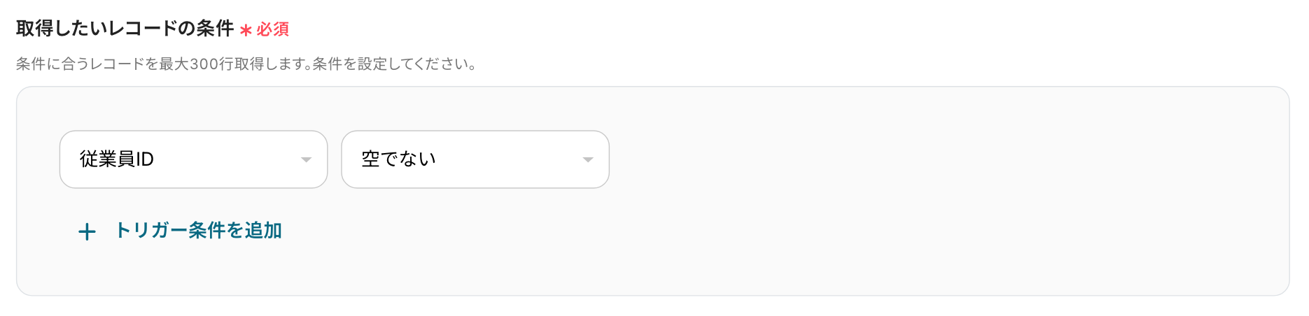 次に進むと、「取得したいレコードの条件」を設定する画面に遷移します。