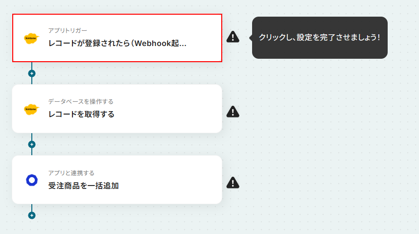 今回ご紹介するテンプレートは、kintoneにレコードが登録されたら起動します。