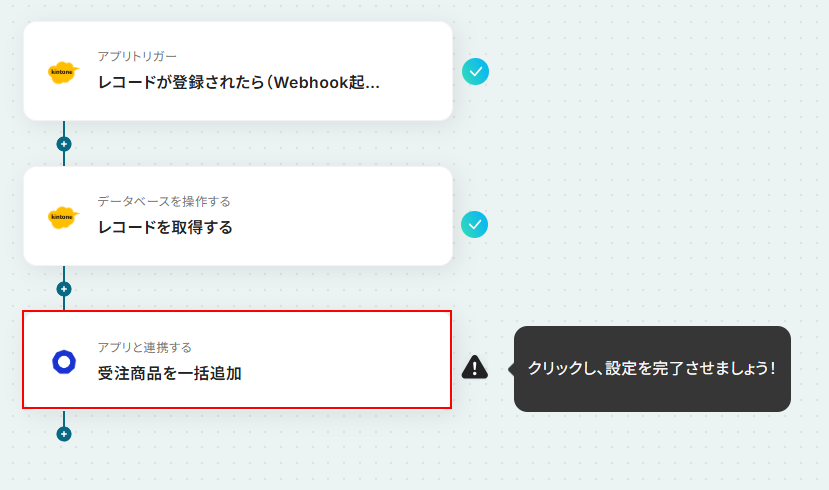 それではここから代表的な例として、kintoneでレコードが登録された際に、その情報を基にecforceに受注商品を一括で自動登録するフローを解説していきます!