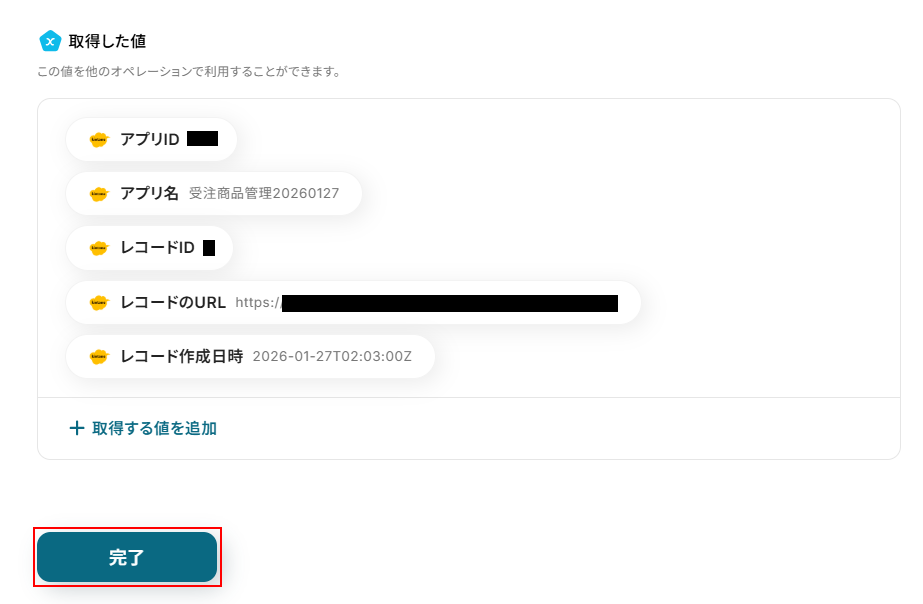 登録した情報をステップ3でkintoneのレコードを追加する際に使用します。