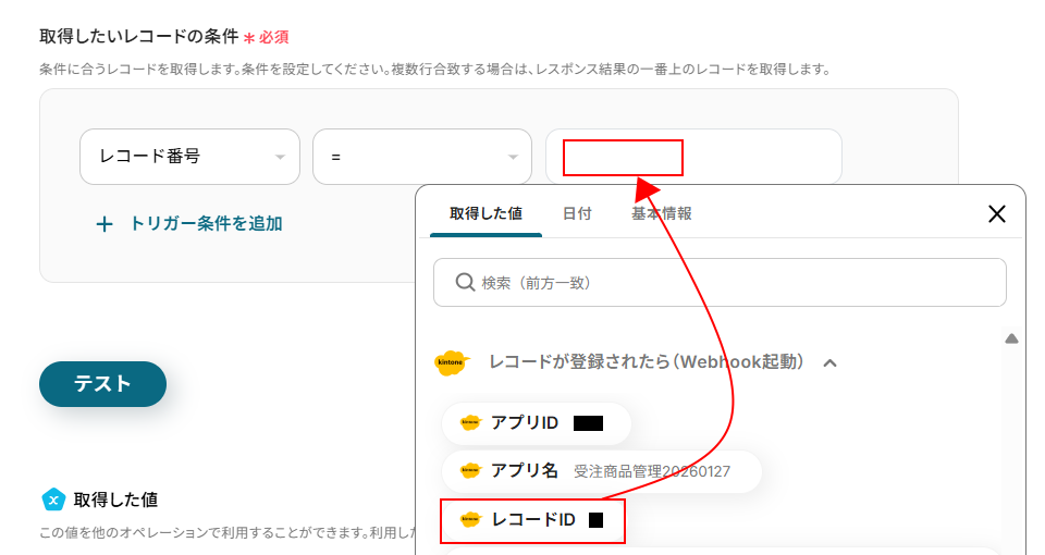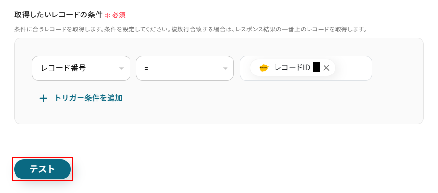 取得したいレコードの条件が設定できたらテストをクリックします。