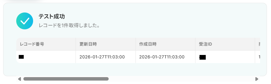 ※レコードには実際にecforceに登録している受注ID、商品ID(事前準備で用意したもの)を設定しています。