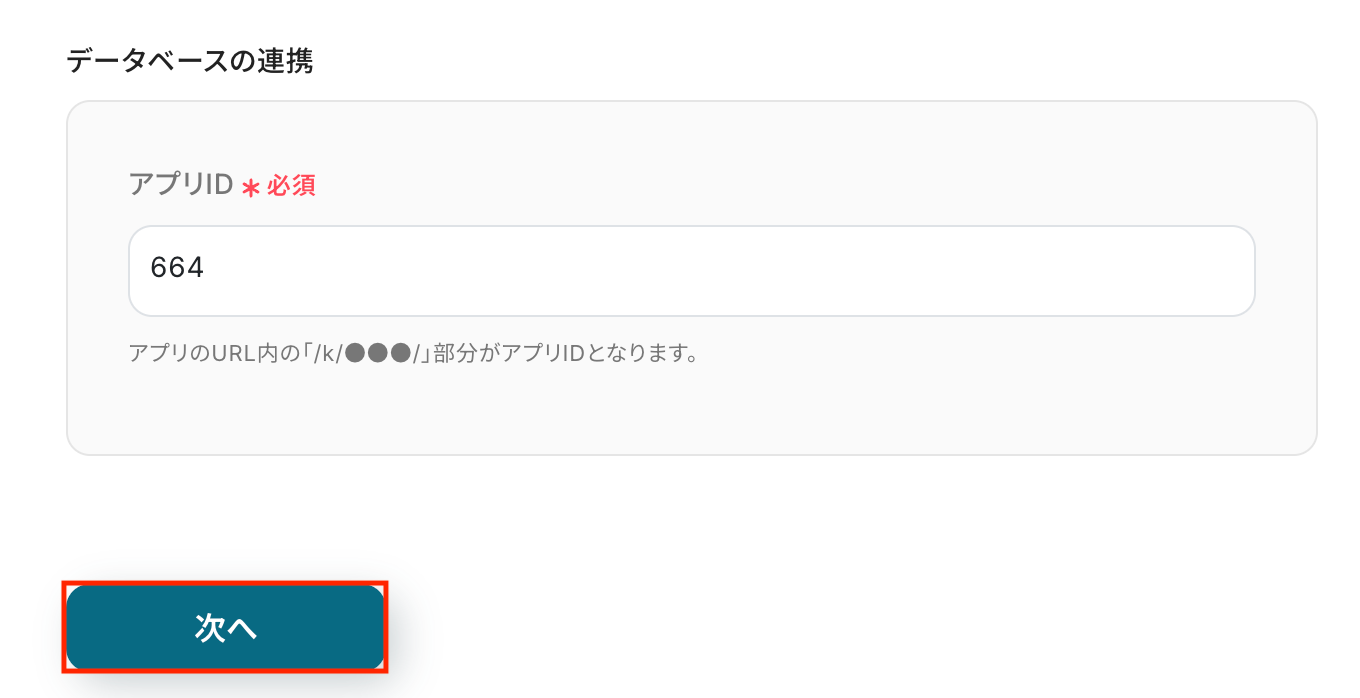 連携させるkintoneアプリURLから注釈に沿って入力してください。