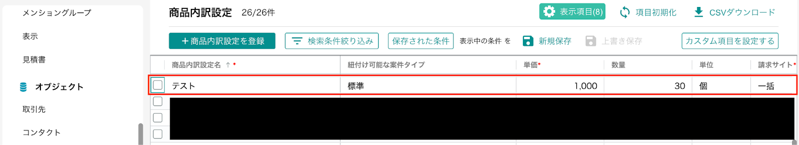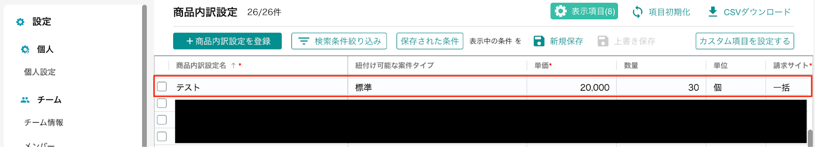 テストが成功したらMazricaの画面を開き、実際に商品内訳設定が更新されているかを確認してみましょう。