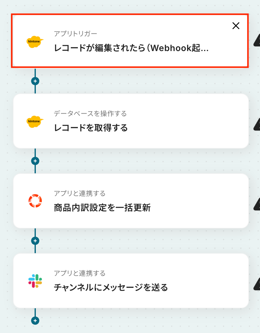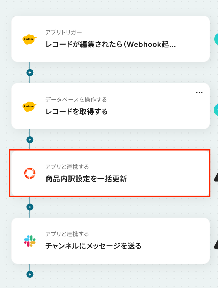 それではここから代表的な例として、kintoneでレコードが編集された際に、Mazricaの商品内訳設定を自動で一括更新するフローを解説していきます!