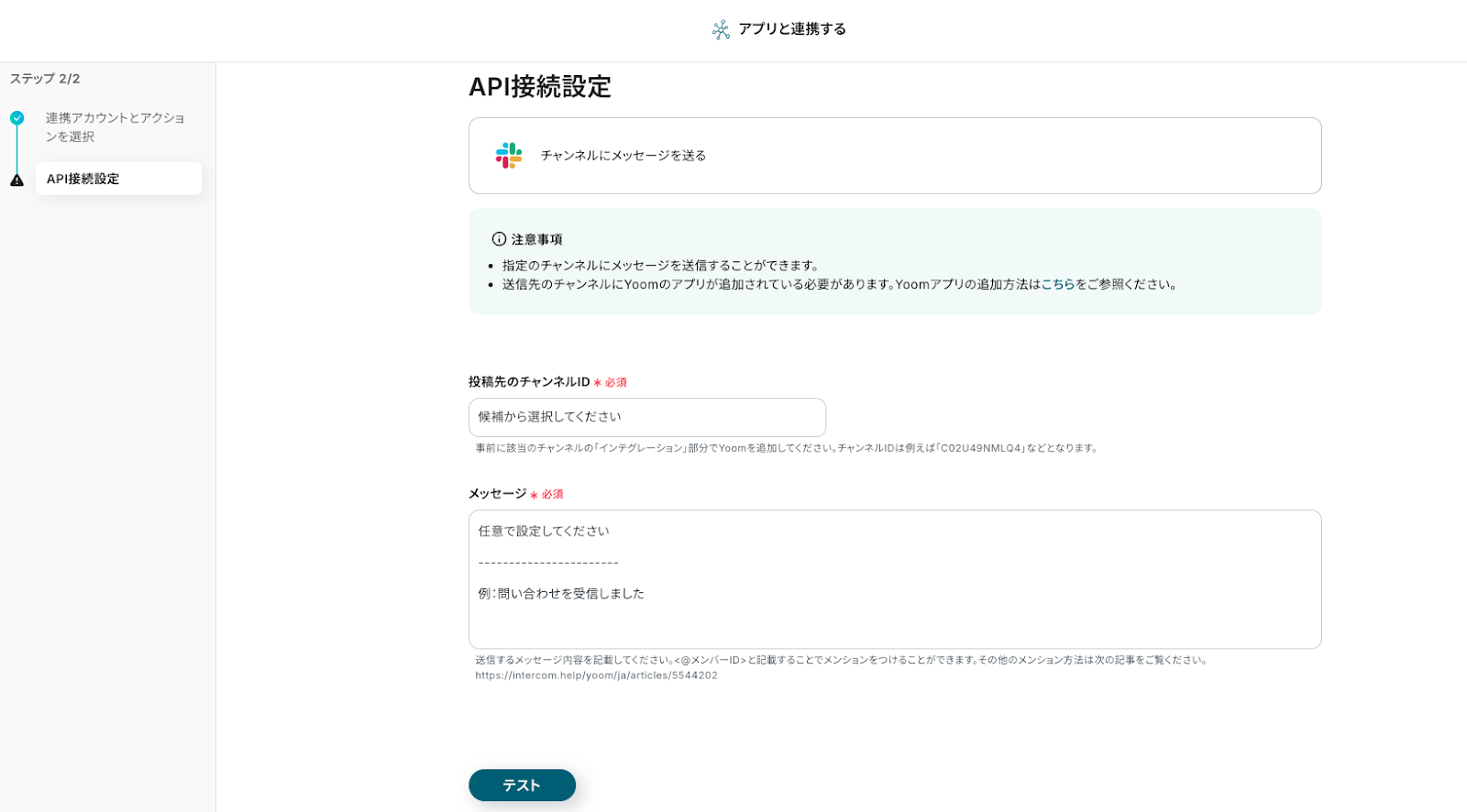 ステップ6:アプリと連携する「チャンネルにメッセージを送る」