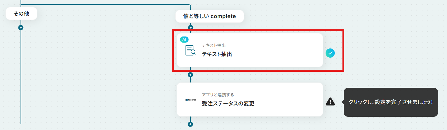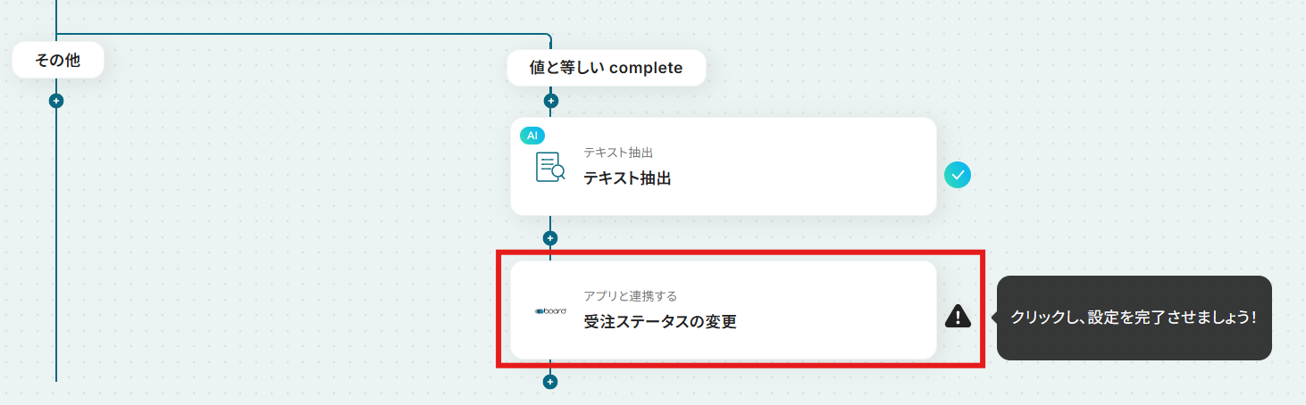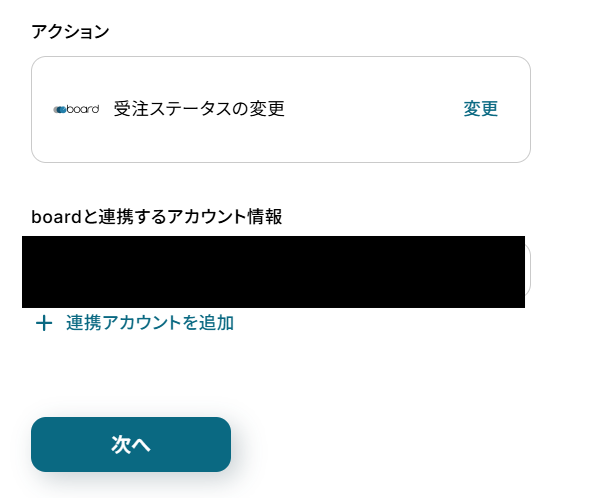 - 最後に、オペレーションでboardの「受注ステータスの変更」アクションを設定し、対象案件のステータスを更新します。