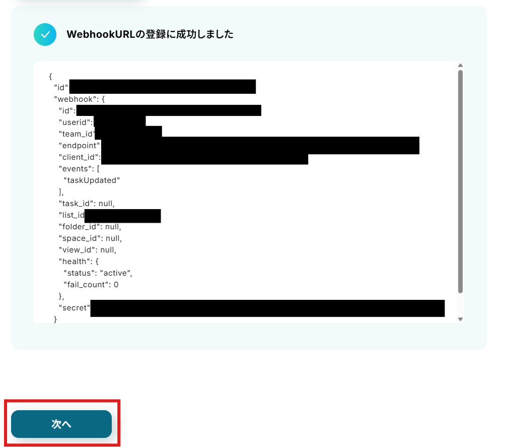 設定できたら「WebhookURLを登録」をクリックしましょう。