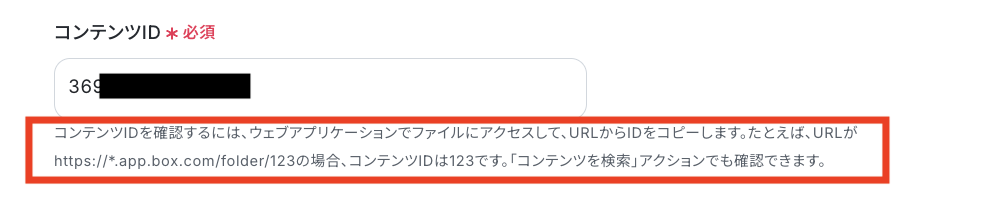 分岐条件は任意で設定が可能です。例えば、「会議のタイトルに特定のキーワードが含まれる場合」や「特定の参加者がいた場合」など、条件に応じてフローを起動させることができます Boxにファイルをアップロードする際、格納したいフォルダのコンテンツIDを任意で設定できます。これにより、会議の種類に応じたフォルダへ自動的に振り分けるといった運用が可能です