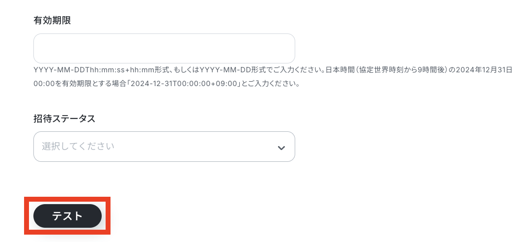 他の項目は任意項目なので、必要に応じて設定してください。 設定が完了したら「テスト」をクリックしましょう。