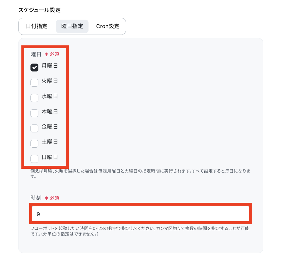 ※詳しい設定方は📅スケジュールトリガーの設定方法 をご確認ください。